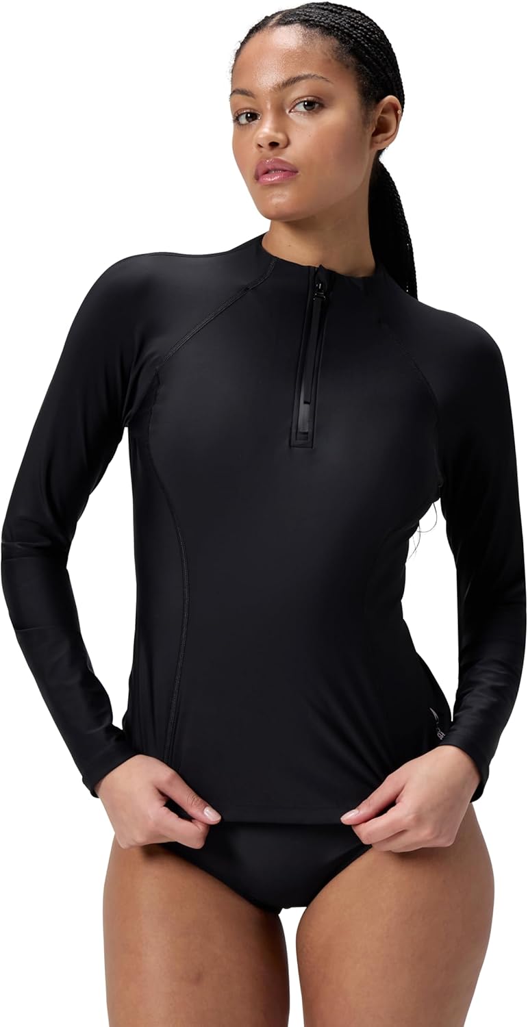 Flex your fitness and stay active whatever the weather in our long-sleeve colour-block swim top. The UPF50+ fabric protects from the elements, so you can throw it on after beach circuits or wear it for long days in the surf. Cut from pilling-resistant Enduraflex fabric for higher chlorine resistance and shape retention.