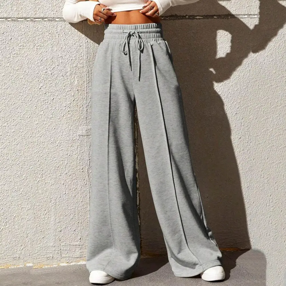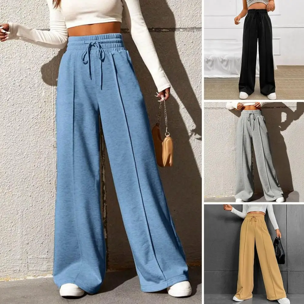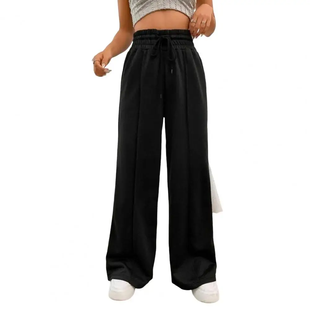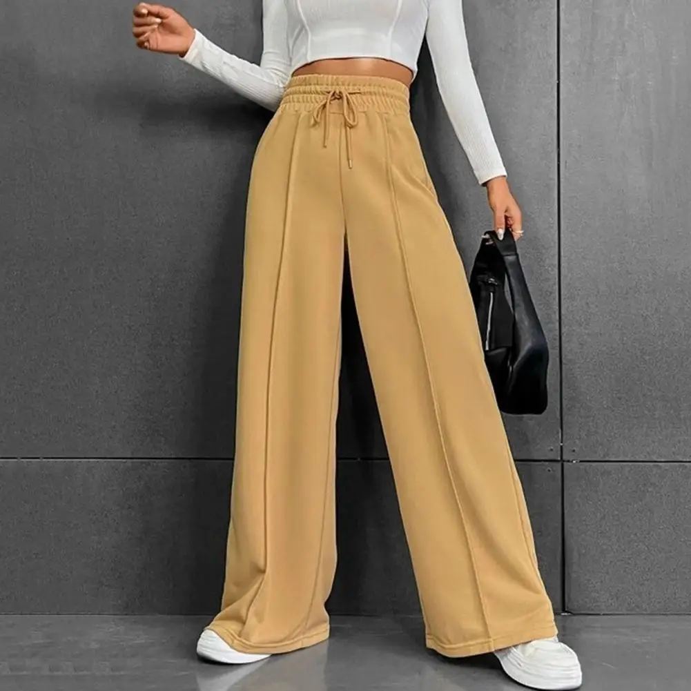 Spring And Summer Ladies' Fashion Solid Colour Drawstring High Waist Wide Leg Pants Daily Wide Leg Comfortable Thin Sweatpants