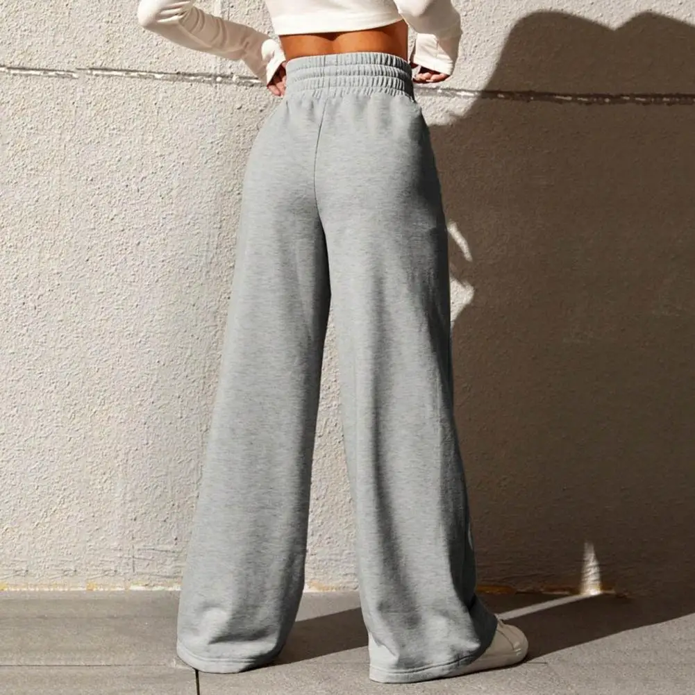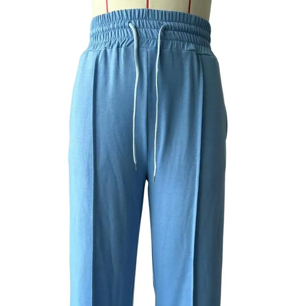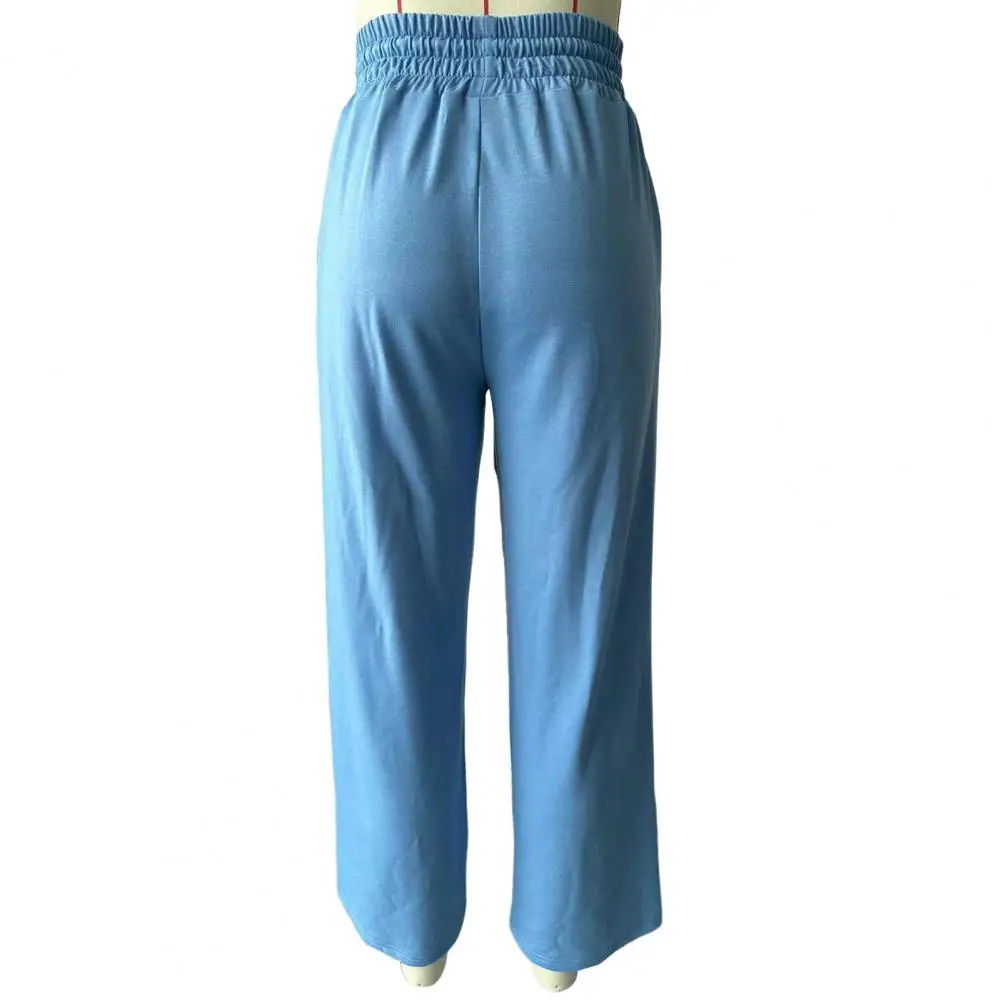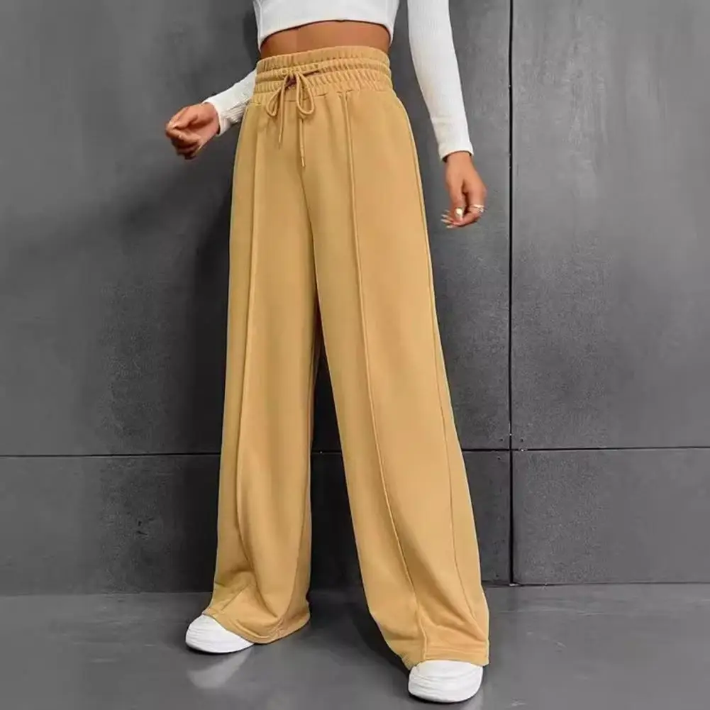 Spring And Summer Ladies' Fashion Solid Colour Drawstring High Waist Wide Leg Pants Daily Wide Leg Comfortable Thin Sweatpants