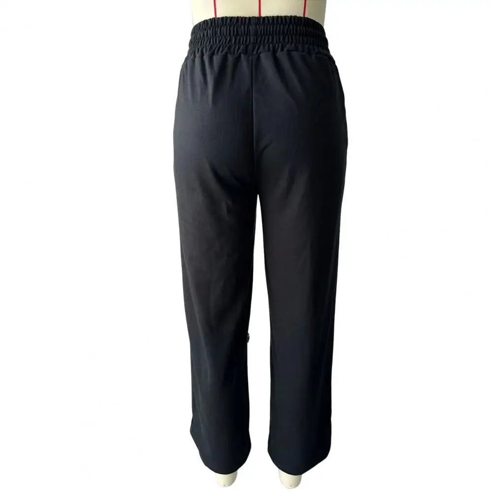 Women Sport Pants Elastic High Waist Adjustable Drawstring Solid Color Loose Fit Long Trousers Outdoor Leisure Pants