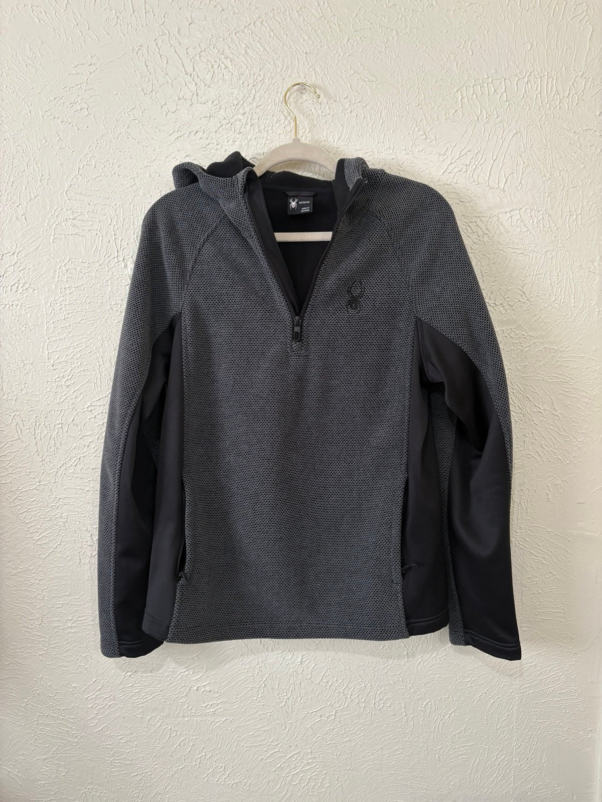 The Spyder Black and Gray Hoodie Jacket is a stylish and practical choice for men looking to stay warm during the winter, fall, and spring seasons. Made from polyester fleece fabric, this pullover hoodie features long sleeves, a hooded closure, and convenient pockets. The solid black color with subtle logo accents adds a modern touch, while the regular fit ensures comfort for everyday wear. Easy to care for with machine washable instructions, this hoodie is perfect for casual outings and walking activities.