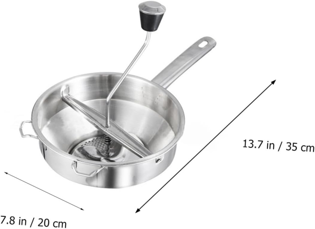 Package Include 1 x stainless steel stirrer Features -Size: 35x20x9.5cm/13.76x7.86x3.73in food mixer -Material: Stainless steel stainless steel food blender -Color: Silver food stirrer -Multi-functional use, for home, kitchen, bar, etc stainless steel cooking supplies. -Easy to clean, the inside can be take off food blender. -You must have one for your house cooking tool. -Stainless steel is for a long time use stainless steel stirrer. -Handle polishing design, grip comfortable, in line with the manual mechanics effortless vegetable blender.Goods Descriptionfruit and vegetable grinder You must have one for your house.vegetable blender For example,you just put potato into the mixer, then turn the handle, after a while, you will have a potato mash.mash making tools This blender is very easy to use