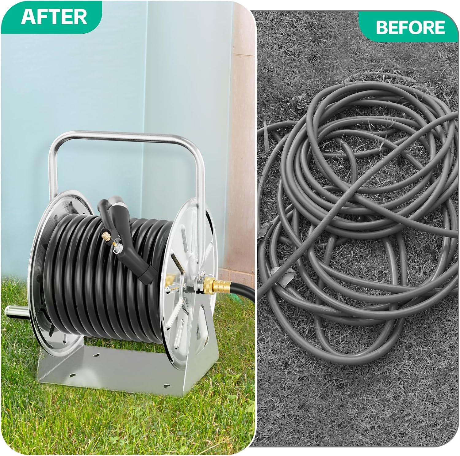 Stainless Steel Garden Hose Reel with 75 ft hose