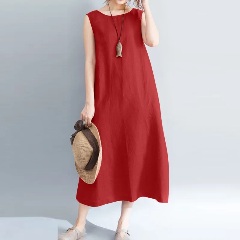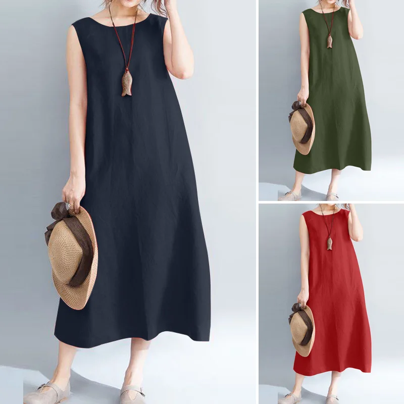 | Package included:1 Dress Material:100% Cotton Colors:Red,Dark Green,Dark Blue Sleeve Length:Sleeveless Neckline:O-Neck Pattern:Solid Color Length:Mid-Calf Length Thickness:Thin Style:Leisure,Bohemian,Retro,Europe Season:Spring,Summer,Autumn Occasion:Family,Party,Beach,Wedding,Holiday Label: Yes Attentions: 1.The Real Object May Exist Slightly Colors Differences Compared To Images As Different Computers Display.Caution If Minding,Thanks. 2.There Might Be A Manual Measuring 1-3 cm Error.Sorry For Any Inconvenience. 3.Please Prevail On Real Item, Model Images For Reference Only. 4.Attention!!!Please check the size chart carefully before placing the order.