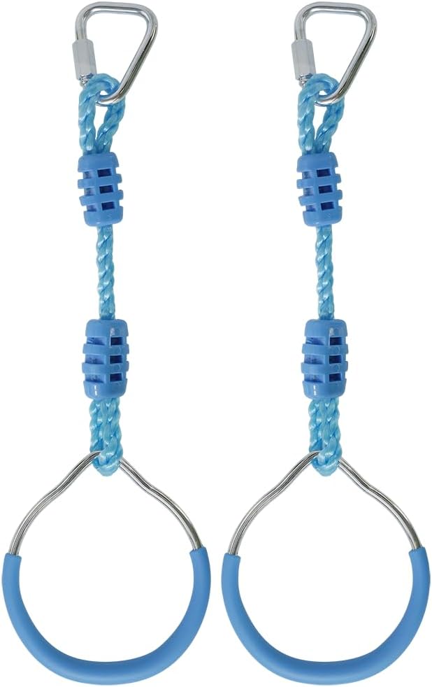 Hokilands Obstacle Trapeze Ninja Ring Swing Monkey Bar Backyard Play Sets create a new entertainment & exercise. What you get 8 Pack Obstacle Course Rings Swing Monkey Rings Gym Fists. -- Color: Purple -- Size is around 18.11''(46 cm) height x 5.5'' (14 cm) width -- Carabiner with safety locked Adult supervision required. Our gymnastic ring fitness fists obstacle trapeze swing bars do not include slackline. We can combine this ninja ring obstacle course with wooden swing monkey bars, swings, climbing rope ladder, monkey fists for more ninja warrior obstacle course, also can play it in an indoor gym room as a jungle gym fitness ring. Why Hokilands We stand behind all of our products. If you're not 100% COMPLETELY SATISFIED, just send us an email, and we promise to make it right. Simply click Add to Cart button now to get one new Gymnastic Ninja Rings Monkey Ring Backyard Play Sets Kit!!!