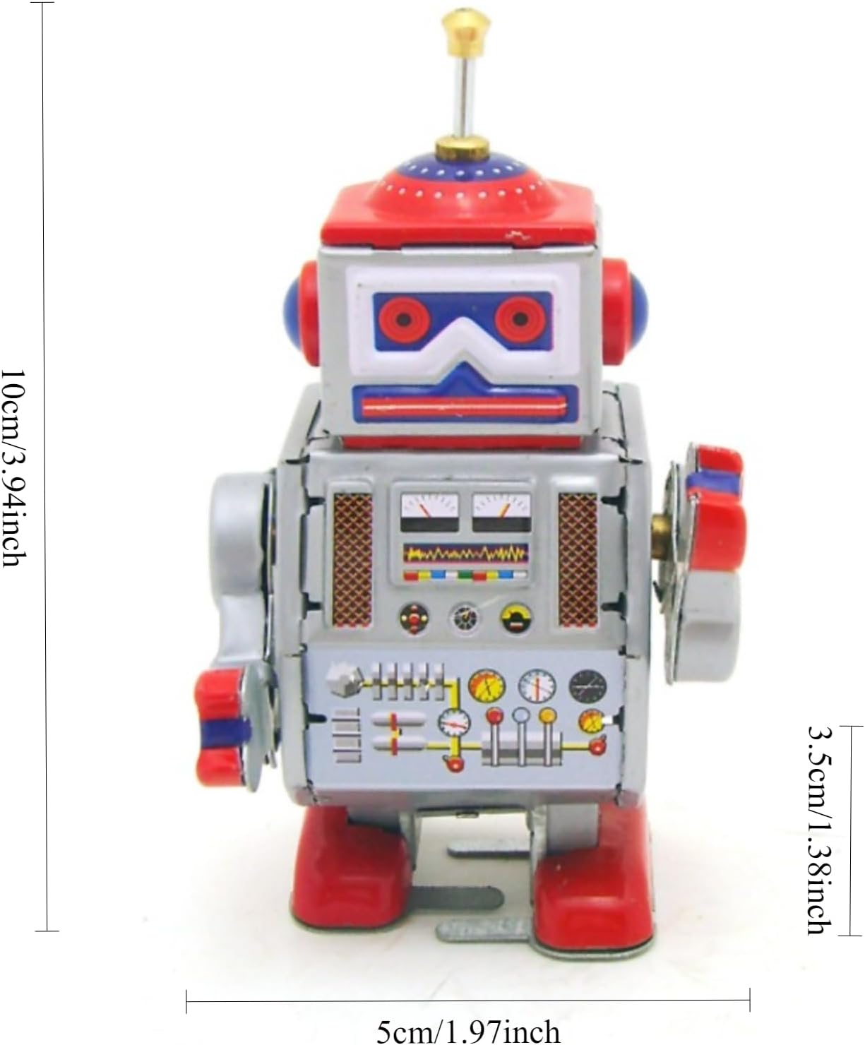 Product description Wind Up Vintage Robot Retro Classic Clockwork Spring for Collection Size:around 10*5*3.5CM Packing: in color box Tin toys belong to adult collectibles and nostalgic toys, handmade. It is normal for some parts to have defects and scratches. Buyers should understand them carefully before purchasing If you believe that poor quality is not a reason for return or exchange due to personal beliefs, please consider carefully! If it is wound, it should not be wound too tightly for the first time. The reference number of turns is about 1 to 3, and it is important not to wind it in-reverse Manufacturer Contact Information zhihuiyicheng