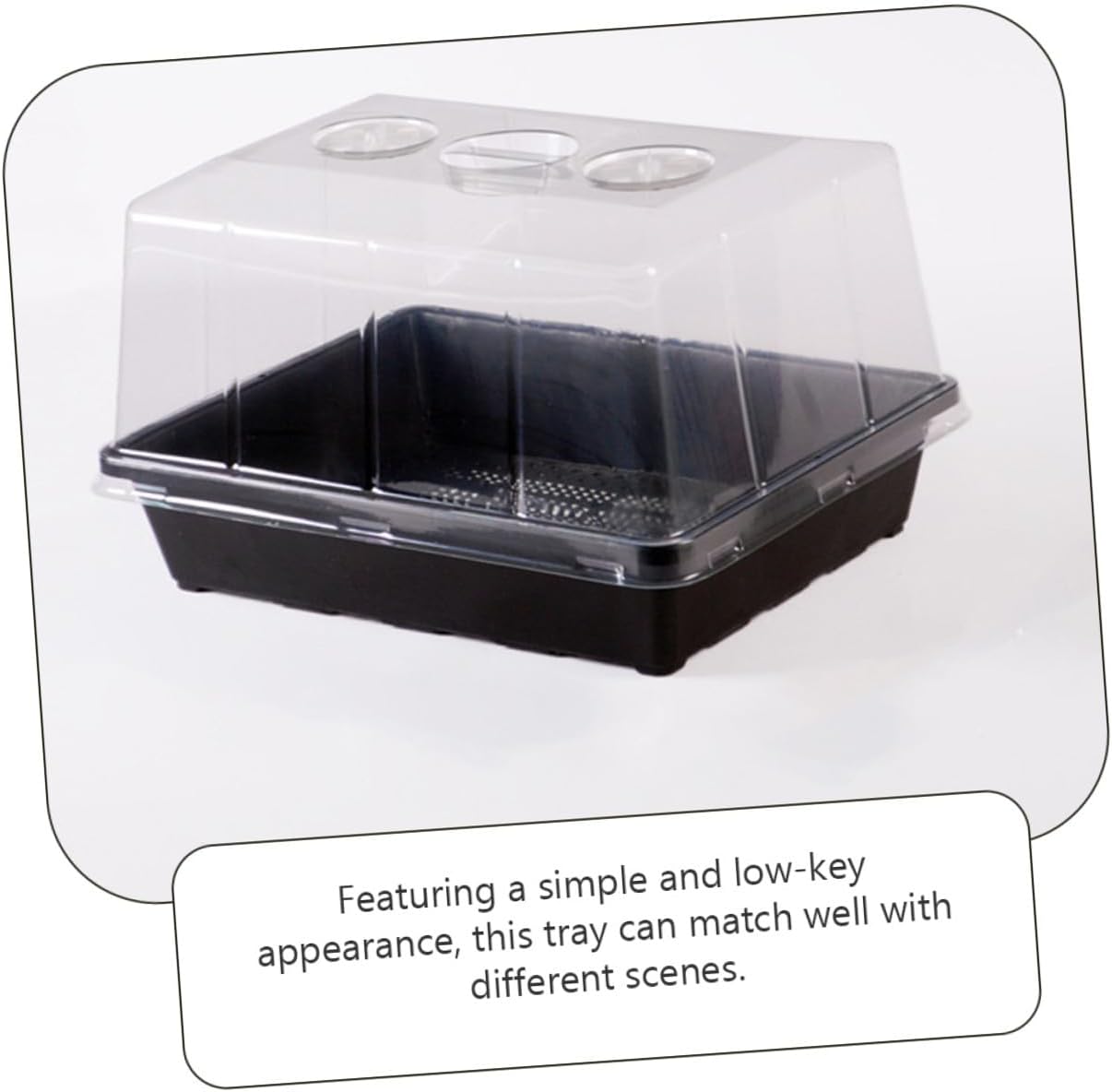 Package List 1 Starter Tray 1 x Dome Characteristics -Product Info:Seedling dish combination -Size:35.00X27.50X21.50cm/13.76X10.81X8.45in -Material:Plastic -Color:Assorted Color - The germination tray is not easy to hurt the root system when transplanting, saving space seedling trays reusable. - Provide the plant with better nourishing space, and they are a great tool for those who love gardening indoor planting trays. - Fine grinding, smooth surface, no burr, comfortable feel, germination tray is safe to use tray for plants. - The germination tray is strong enough, not easily deformed or broken, and nursery starter tray. - This tray is widely used in greenhouse, gardening, agriculture. They are Perfect for seed starting, seedlings starter seed trays.Goods Descriptionindoor planting trays A convenient germination tray for gardening enthusiast.seed trays with dome You can give it as a gift for your friends or family who like gardening on special days.seed trays for greenhouse Our plants starter tray made of good materiel with high durability and practicability will bring you a pleasant using experience