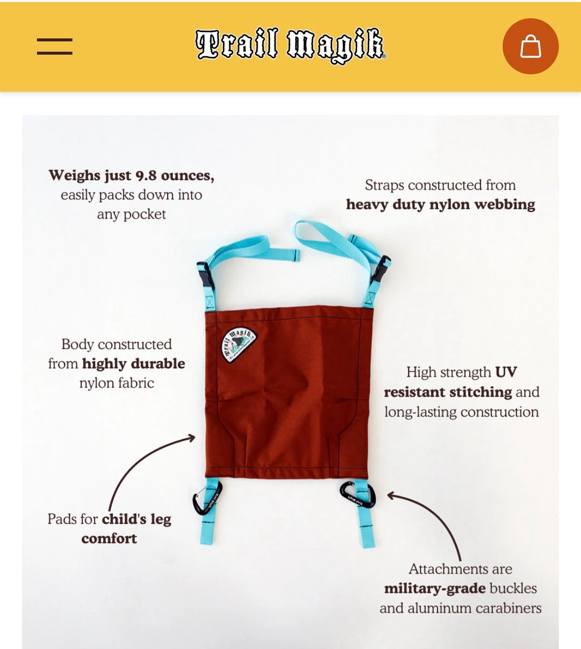 Trail Magik is an innovative, lightweight hiking carrier for kids aged 1 and up. When your little hiker needs a rest, simply attach your TrailMagik to the front of your backpack, put them in, and go.