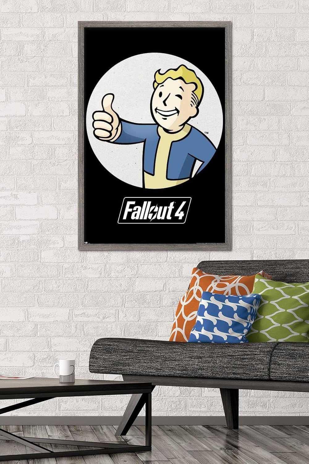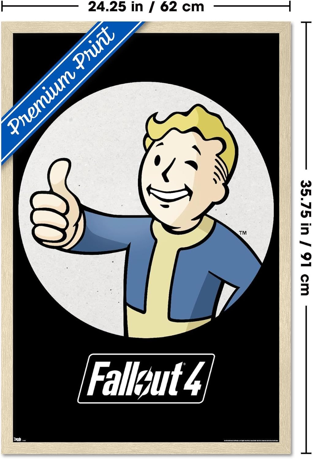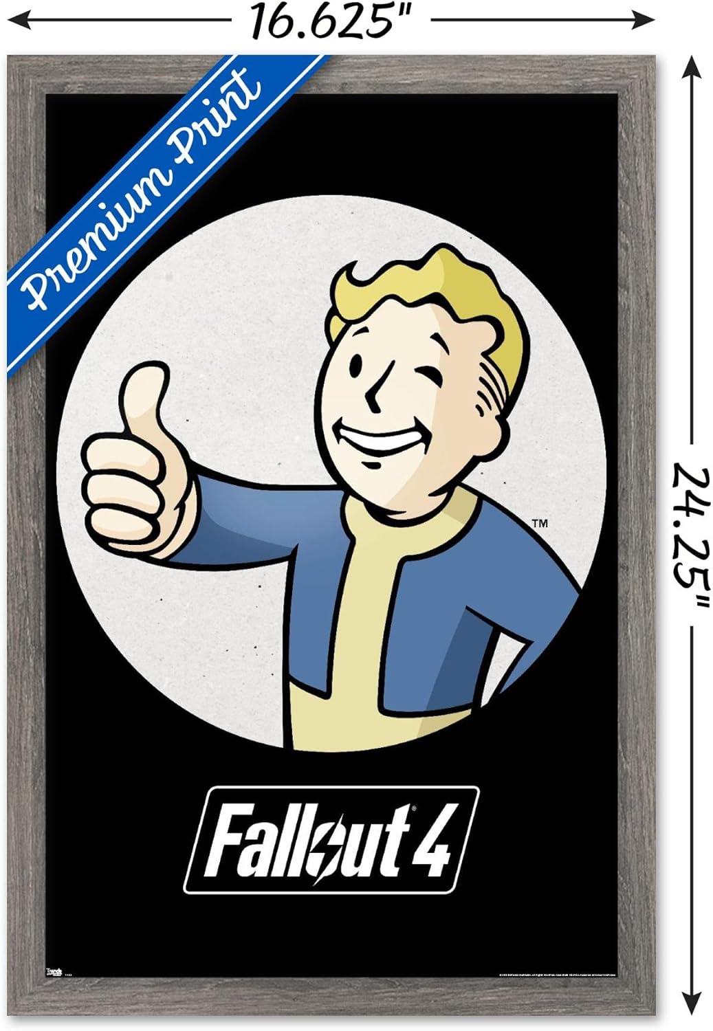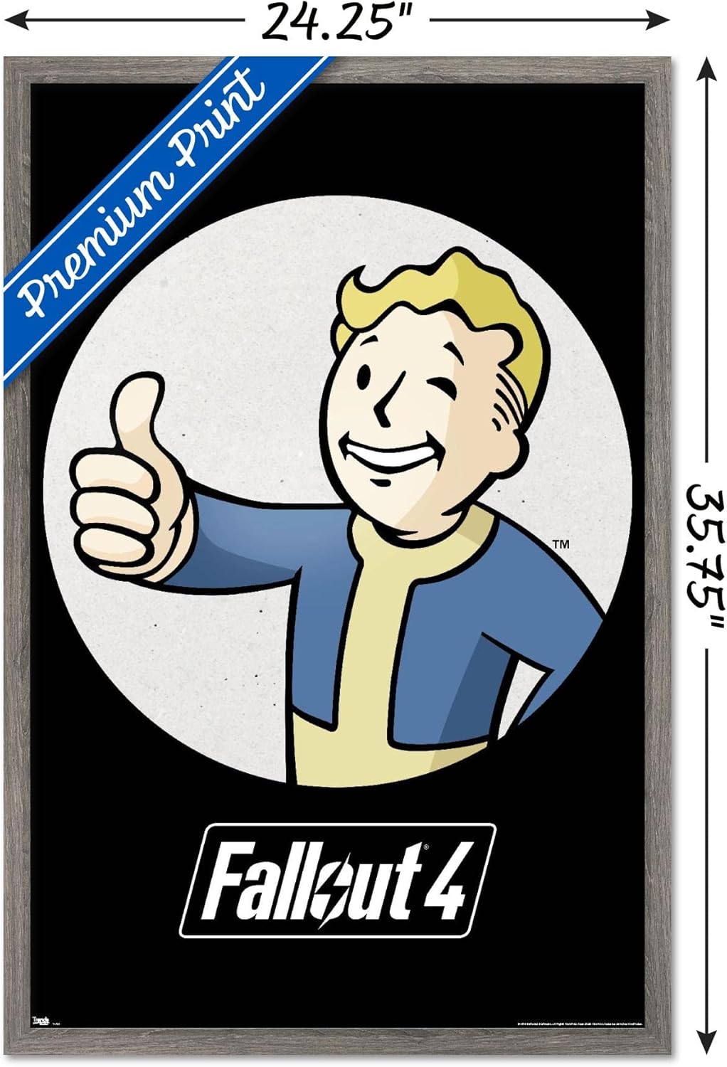 Trends International framed posters are everyone's favorite room decor! The clean, modern design and premium satin finish of this Fallout - Vault Boy - Thumbs Up Wall Poster will make a bold wall decor statement in any room. Decorate the bedroom, bathroom, kid's room, living room, office, dorm, and more! Our framed posters are lightweight and easy to hang using the sawtooth hanger so you'll be able to enjoy it in no time. Every one of our framed posters are proudly Made in the USA. Add these decorations alongside the other accessories on your party supplies list too! Trends International's wall posters are the perfect way to dress up your parties. A framed poster makes a great gift as well! Whether it's for a birthday, Christmas, house warming or for your best friend, they'll love receiving a framed poster to show off their style.