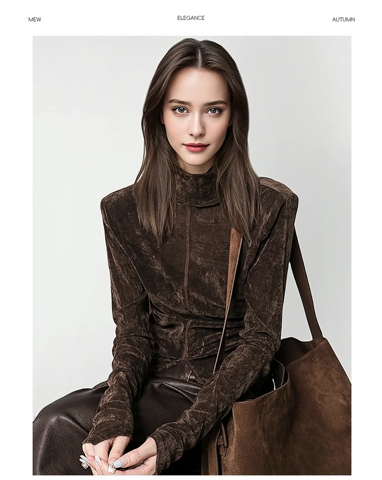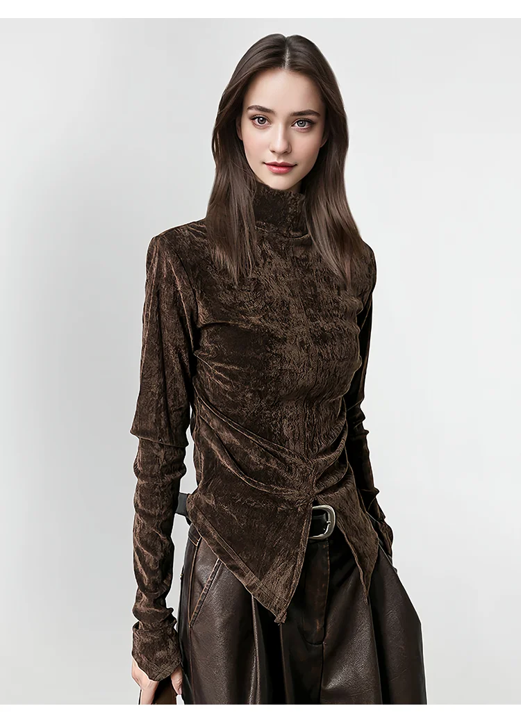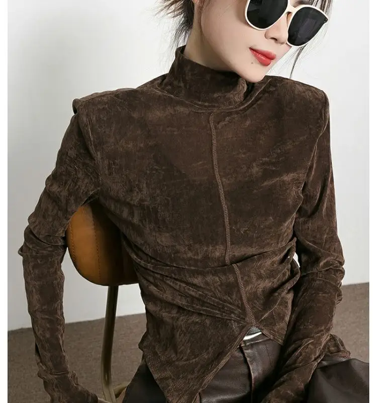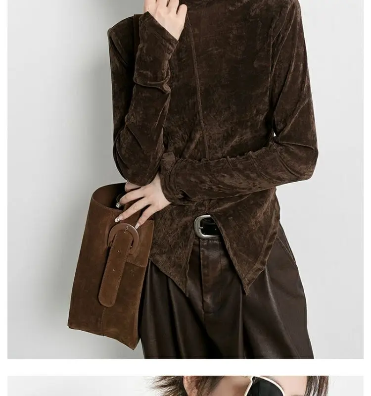 Turtleneck Tshirts Women Front Side-slit Solid Color Soft Female Long Sleeve Tops Leisure Tees Autumn All-match Irregular Slim