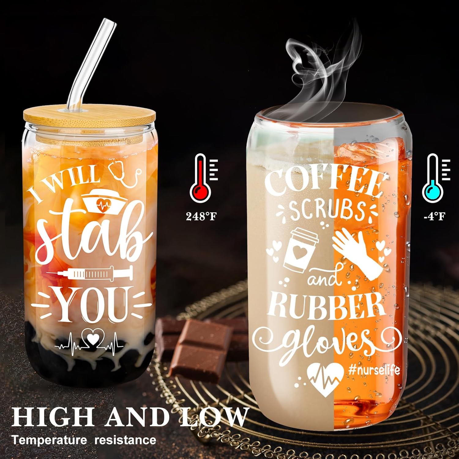 | Included Components | 12 Sets nurse gift can shaped glass cup |