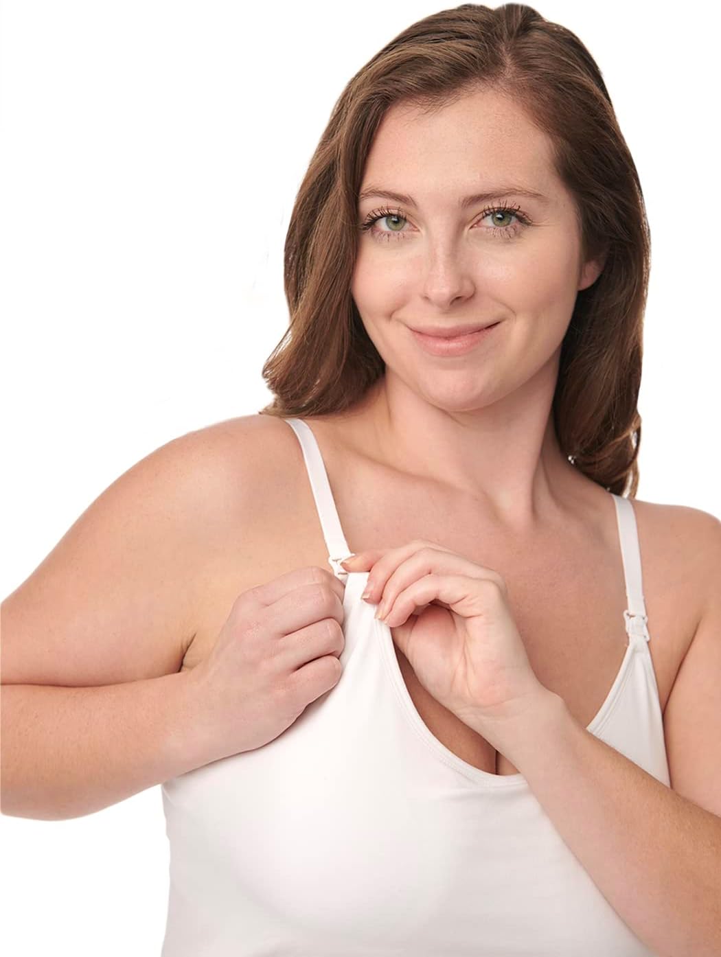 Under Control Nursing Cami Tank Tops for Breastfeeding Women Nursing Tops, Camisoles with Built in Bra 3Pack White Medium