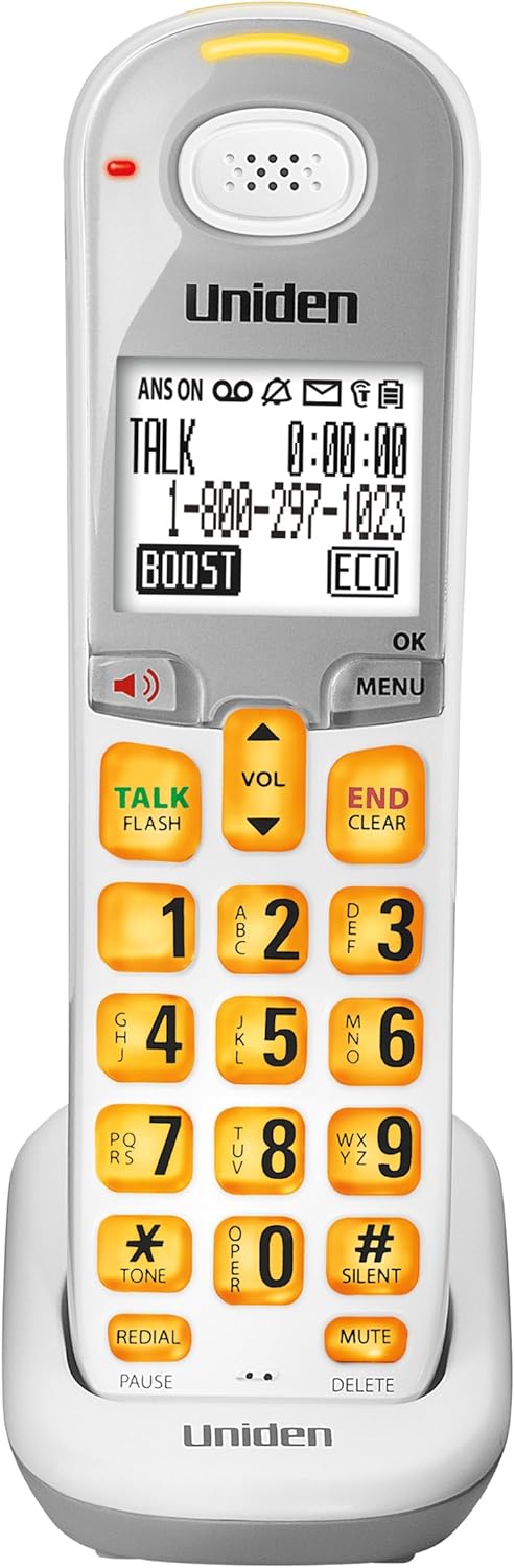 The D3097 Series Cordless Phone with Caller ID and Answering System has amplified audio up to +30db boost and features digital DECT 6.0 for crisp, clear sound and gives you the opportunity to take the handset a distance from the base. There is a visual ringer on the handset and base and the silent mode quiets all ringers and incoming messages. There is a speakerphone with amplified boost key and large buttons with a highly visible backlit key pad. You can store up to 50 names and numbers to the caller ID list and up to 100 names and numbers in the phonebook. Other features include a 5 number redial, intercom and call transfer, belt clip and headset jack, and white backlit scalable font LCD.