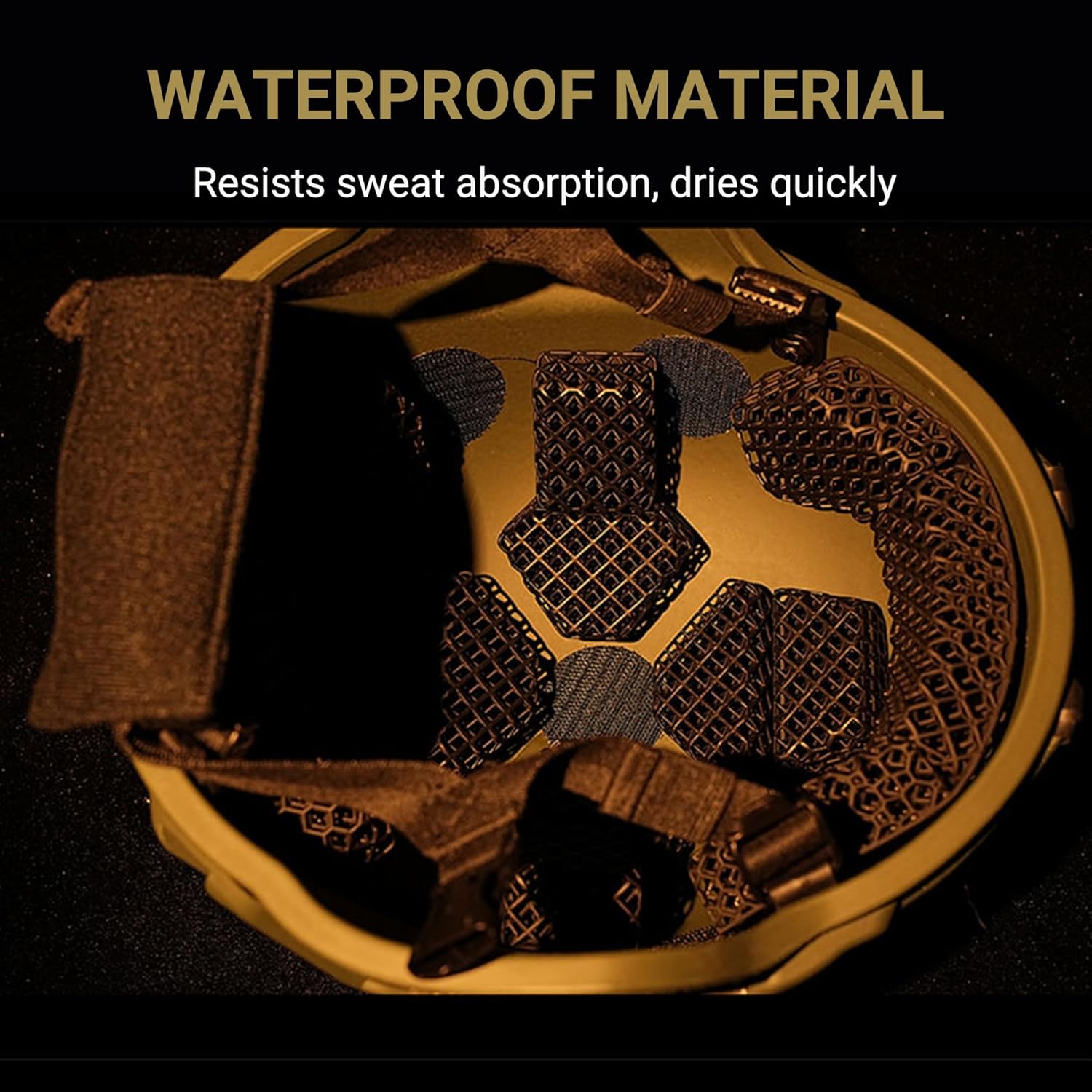 This UniPro 3D printed tactical helmet padding system is designed for comfort, ventilation, and durability. Using DLS technology, each elastic lattice pad conforms to different head shapes while maintaining stable support. The waterproof, breathable material helps reduce heat and moisture buildup. A dual-layer structure improves impact absorption, while optimized edges enhance comfort. Compatible with multiple helmet types and easy to install with secure hook-and-loop attachment. Material: Thermoplastic Elastomer Manufacturing Process: DLS 3D Printing Thickness: 1 inch Color: Black Set Includes: 6 Pads Attachment Points: 14 hook-and-loop dots (1.18 in diameter) Features: Lightweight, breathable, waterproof, multi-helmet compatible