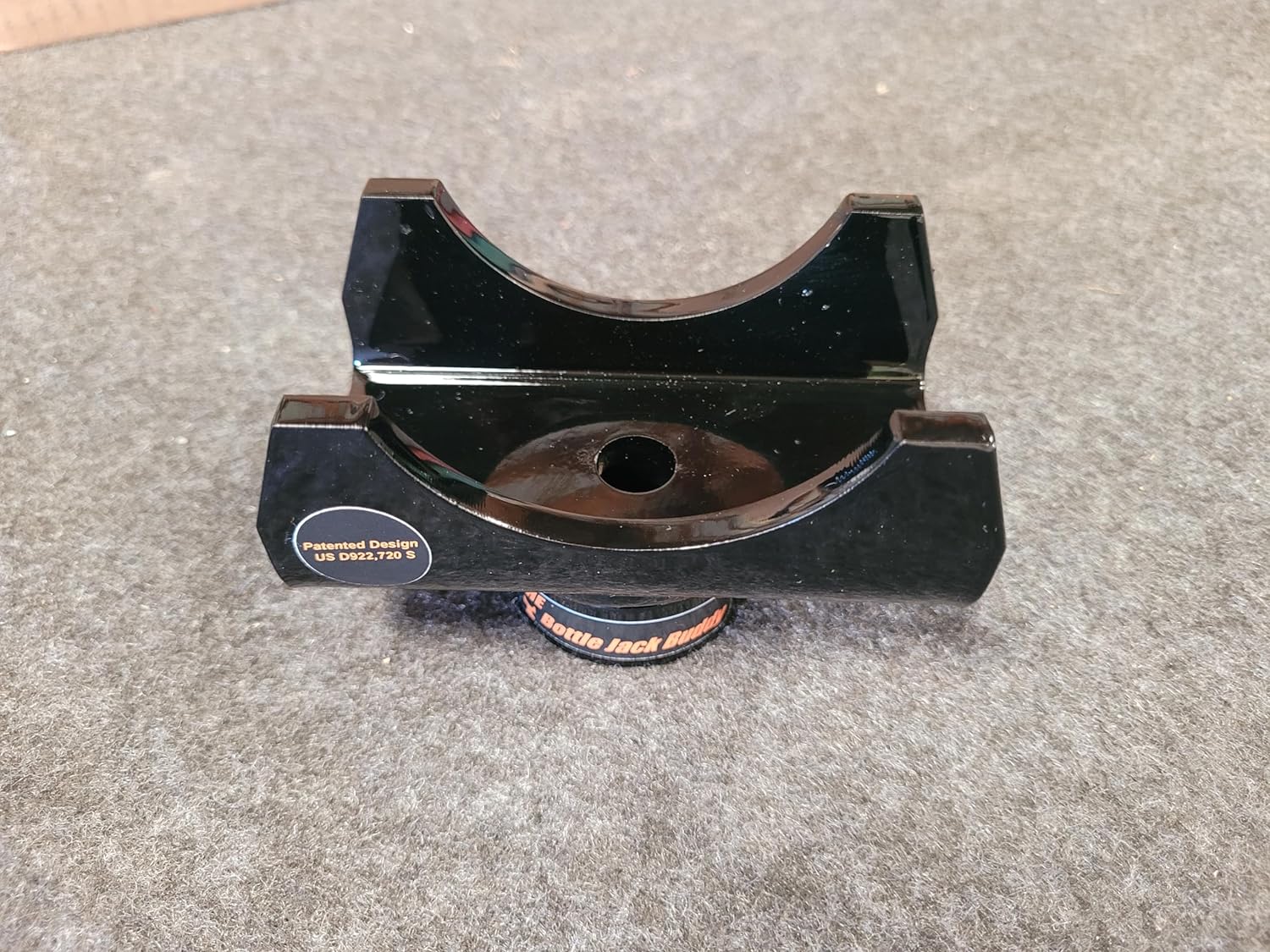 The USA Made Bottle Jack Buddy ! BJ Buddy Great tool or 4x4 gift idea!! This nifty little axle saddle fits right on your hydraulic bottle jack and holds your axle tube while you jack up the axle with this lift pad. The product has a patented design for lifting an axle with a bottle jack. It just slips on and doesn't require any welding! This is the perfect automotive tool to keep in your vehicle when using a bottle jack on an axle. This bottle jack axle bracket will help lift a vehicle from the axle more securely rather than putting just the bottle jack pad on the axle. Will hug and cradle axles up to 3 inch tubes. As you can see in the pictures, the design is compact and lightweight; it only weighs 1 pound 9 ounces! The saddle is made from 1/4" steel and the assembly sits on any bottle jack that has a 1.5" lifting platform or smaller. It will likely work with any 12 ton bottle jack but measure your lifting platform to confirm that it will work with our product. Smaller bottle jack lifting pads will work, but there will be space between the jack and the tube and it will have to be centered, it's ideal to have the lifting pad as close to 1.5 inches in diameter as possible for a better fit. It's the perfect bottle jack adapter for the garage, the 4x4 trail, Jeep, Recovery, RV, travel trailer, farm, ranch, overlanding, horse or livestock trailer, vehicle roadside safety kit, or any other location where you want to lift the vehicle from a solid axle in a secure and safe manner. It's a good tool for an off-road tool kit. Comes powder-coated in black. Made in the USA. Bottle jack not included. You are responsible for your own safety anytime you lift a vehicle or use a jack. Always use jack stands before climbing under a jacked-up vehicle. You are responsible for proper knowledge of how to safely use a jack and safely lift a vehicle. This product does not replace your own own judgement or critical thinking.