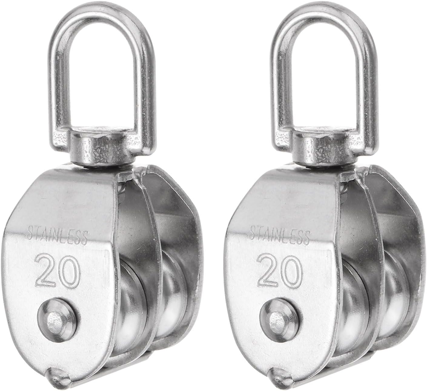 DescriptionQuality Material: Our pulley blocks are constructed from 304 stainless steel, which ensures that the rope roller pulley is highly durable and resistant to rust, exceptional durability, and resistance to deformation. The pulley surface under-goes a shock light treatment process, resulting in a smooth finish without any burrs.Increased Load Capacity: The double sheave configuration of this pulley block enables it to handle heavier loads compared to a single sheave pulley. By distributing the weight across two sheaves, it effectively reduces the strain on the rope or cable, allowing for easier lifting or pulling operations.360° Swivel Ring: The pulley roller glides effortlessly, while its top ring offers a 360-degree rotation. This design minimizes rope knotting and enhances the convenience of rope transportation during lifting activities.Versatile Applications: Double Sheave Pulley Blocks are versatile tools used in various industries and settings. They find applications in construction, rigging, lifting equipment, rescue operations, and more. With their increased load capacity, they are especially useful in applications where heavy objects need to be moved or elevated.