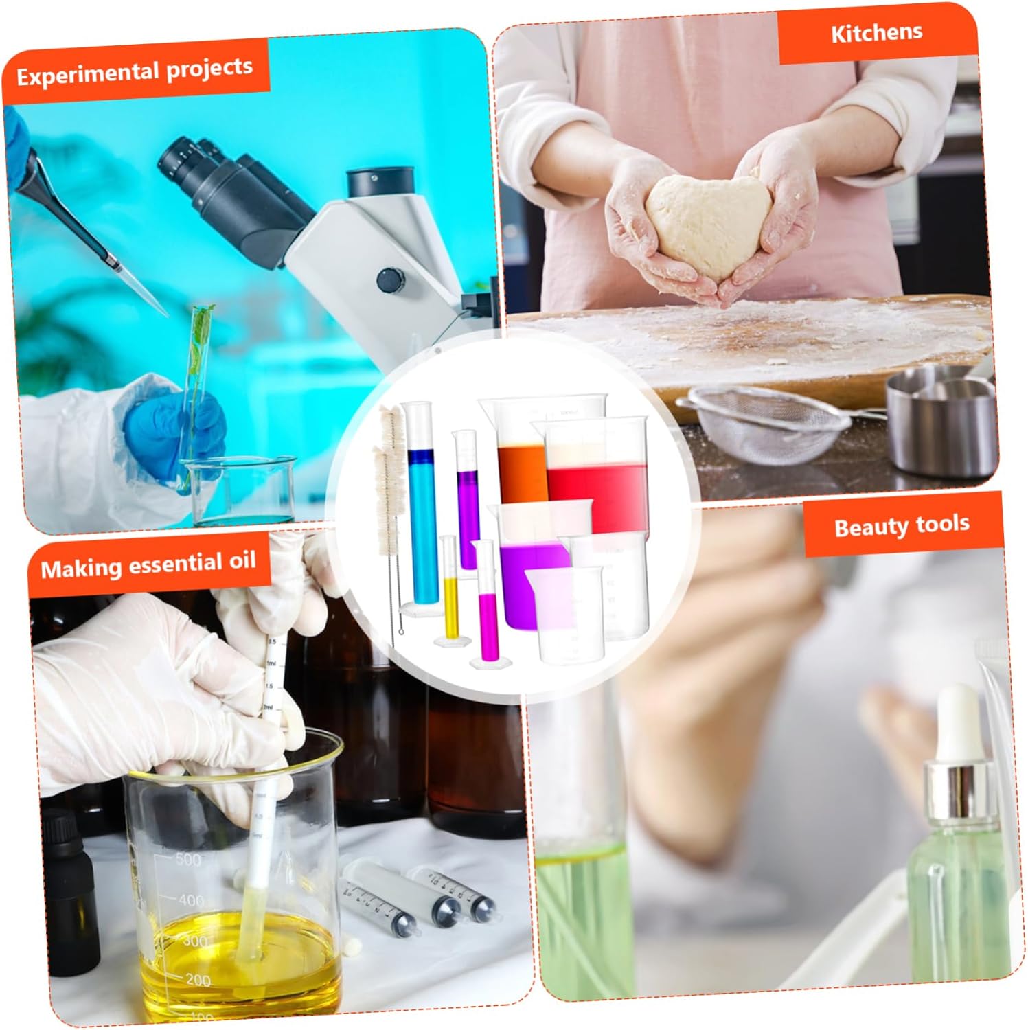 Package Include 12 x Graduated Cylinders 15 x Beakers 12 Tube Characteristics -1000ml Graduated Cylinders Size:14.30X12.80X12.80cm/5.62X5.03X5.03in clear plastic graduated cylinders -Color:As Shown pharmaceutical laboratory equipment -Capacity: Cylinder: 10/25/50/100ml, Beaker: 50/100/250/500/1000ml professional lab graduated measuring cup -Material:Plastic measuring beaker Cylinder uses hexagonal base design for more stable placement. And the beak-shaped mouth is designed for pouring smoothly plastic science beakers. This cylinders beakers set is suitable for lab projects or the kitchen, it is chemically resistant to acids, bases, and many common solvents lab cylinders. You can use this to graduated measuring cylinders and beakers set measure epoxy, paint or other liquids test tube beaker. This lab experiment set includes four graduated cylinders, five beakers and four test tube graduated measuring cylinder. Made of food-grade plastic material, this cylinders and beakers set is safe and sturdy, ensuring longer use equipment.Goods Descriptionclear plastic graduated cylinders It has the advantages of clear scale, stable placement, accurate measurement and smooth pouring, which is wonderful liquid measuring tools for doing experiment.plastic science beakers like experiment? If yes, this product is the for you.beakers and graduated cylinders This is a multifunctional and practical cylinder and beaker set