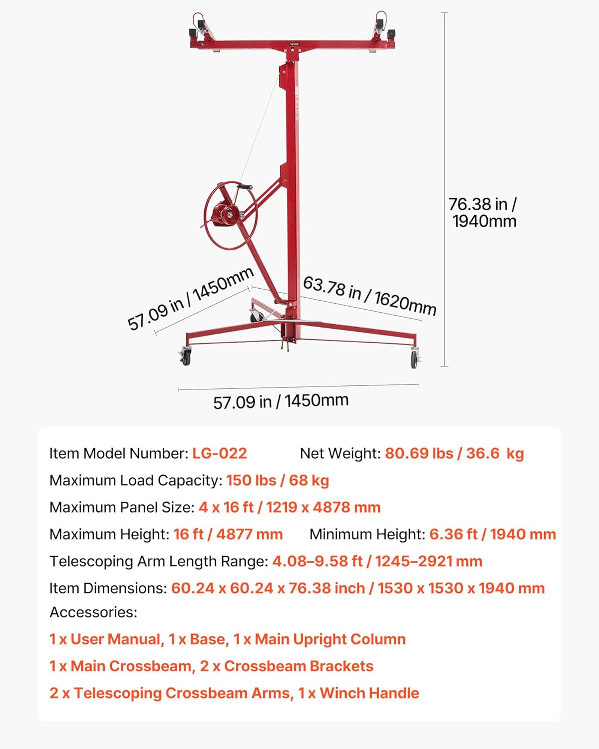 | Included Components | 1 x Base, 1 x Main Crossbeam, 1 x Main Upright Column, 1 x User Manual, 1 x Winch Handle, 2 x Crossbeam Brackets, 2 x Telescoping Crossbeam Arms |