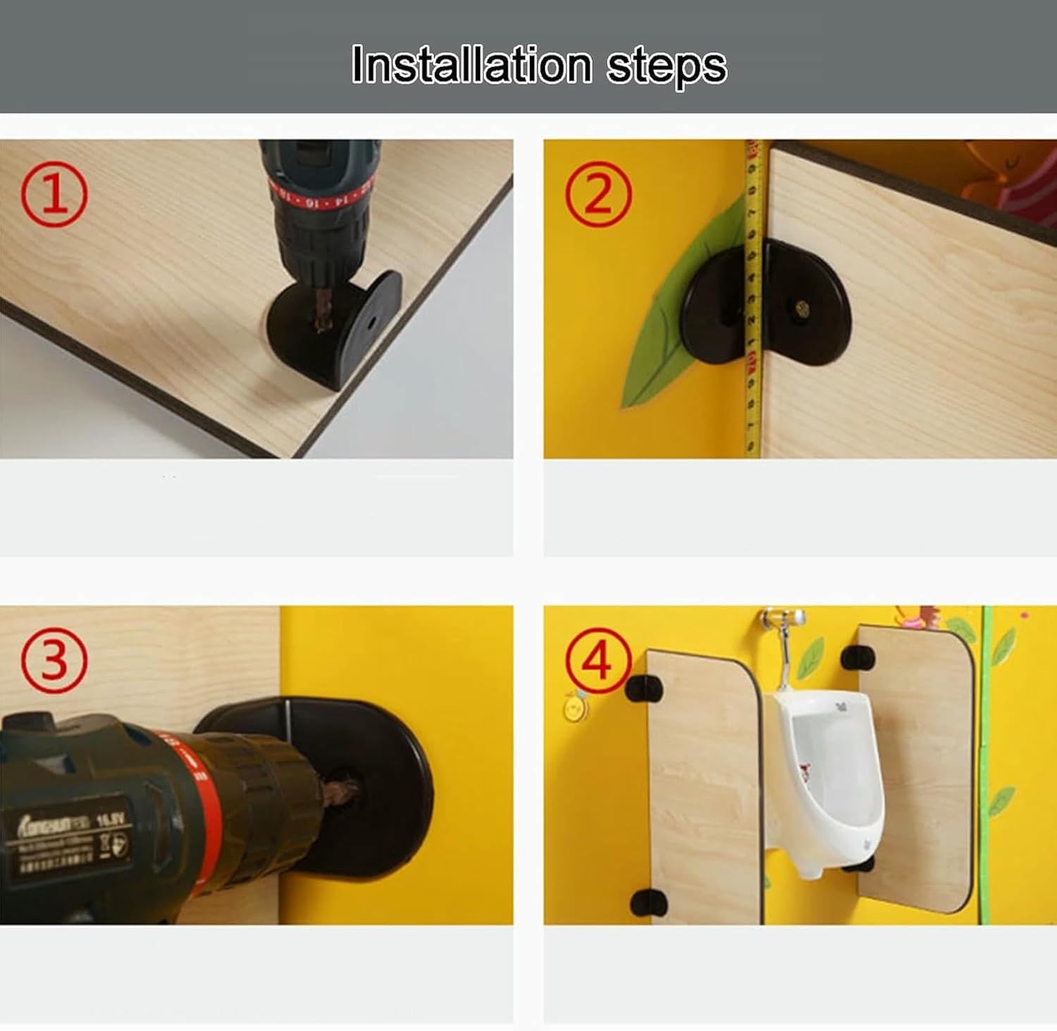 The room divider has a simple appearance and can be perfectly matched with any of your decoration styles or places. The corners are rounded to avoid bumps and injuries when children go to the toilet.➤ Product parameters:Name: Urinal partitionMaterial: Anti-double plateDimensions: 60×30cm/23.6×11.8in,60×40cm/23.6×15.7inInstallation type: Wall-MountedSpecifications: 1 pcs, 2 pcs, 3 pcs, 4 pcs,5 pcsAccessories: Plastic accessories X4/piece, screws, expansion tubeSuitable places: public toilets, bars, hotels, shopping malls, studios, garages, restaurants, schools, etc.➤ Note:1. The above size parameters are measured manually, there will be an error of about 1-2 cm, thank you for your understanding.2. Due to monitors, shooting light and other factors, the product color may be slightly different from the picture, thank you for your understanding.