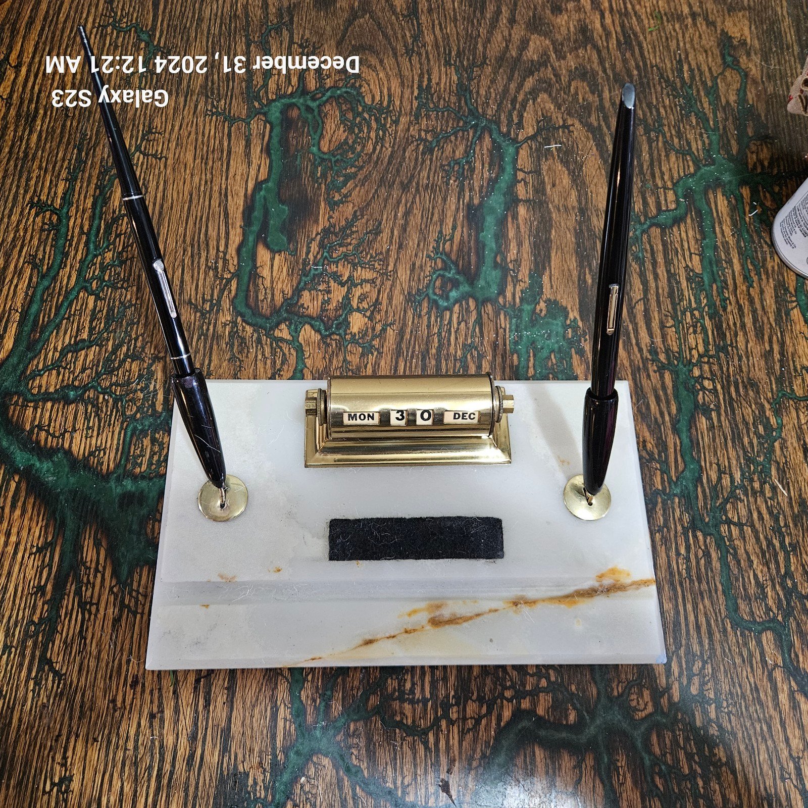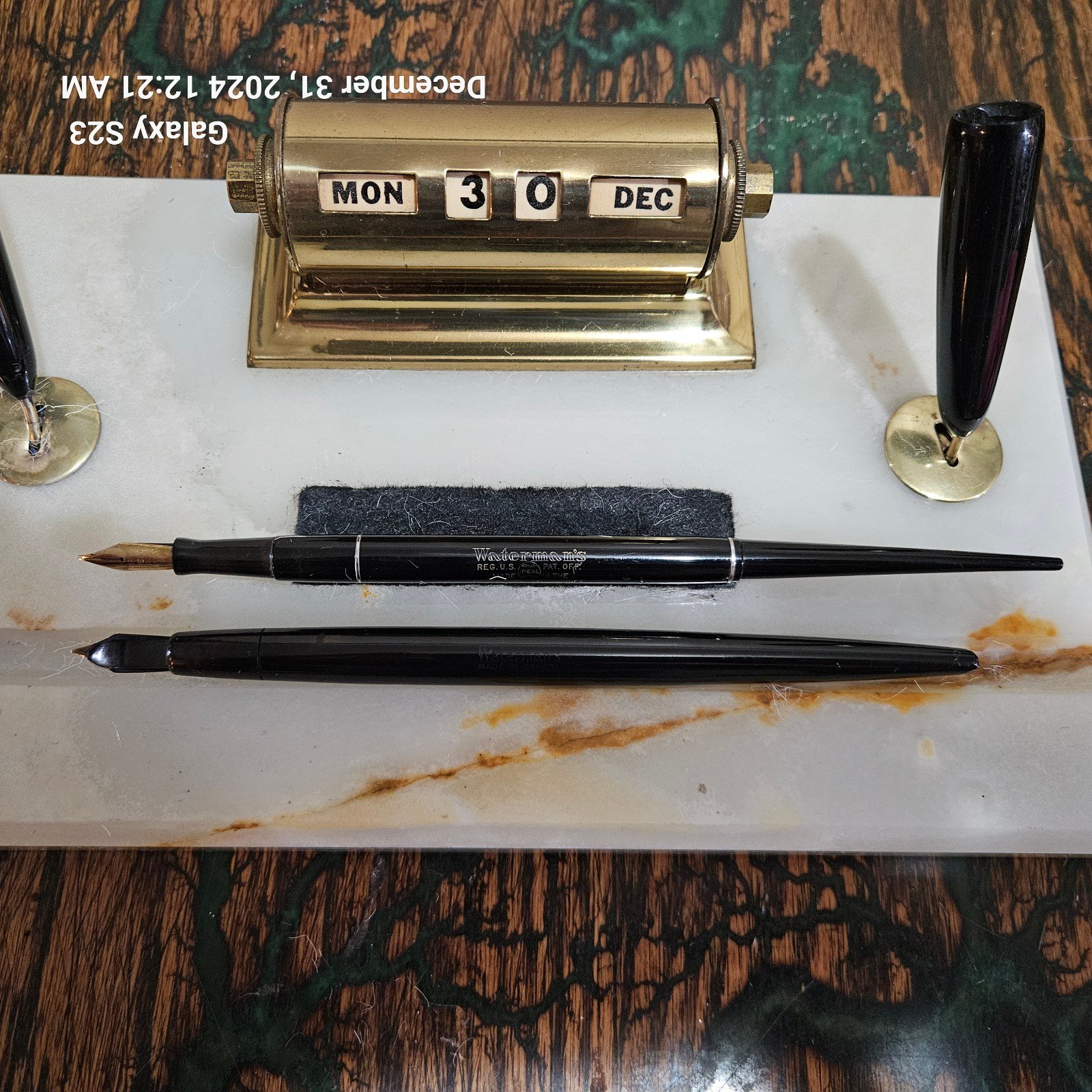 For sale is a pair of black Watermans Desk Pens, including (1) Watermans Hundred Year Pen and (1) Watermans Ideal Antique Desk Pen and (1) Watermans Double Desk Pen Marble Base. Please see pictures for the actual items and condition of items you are purchasing. I have tried to show the items in as much detail as possible. If I can help please let me know.