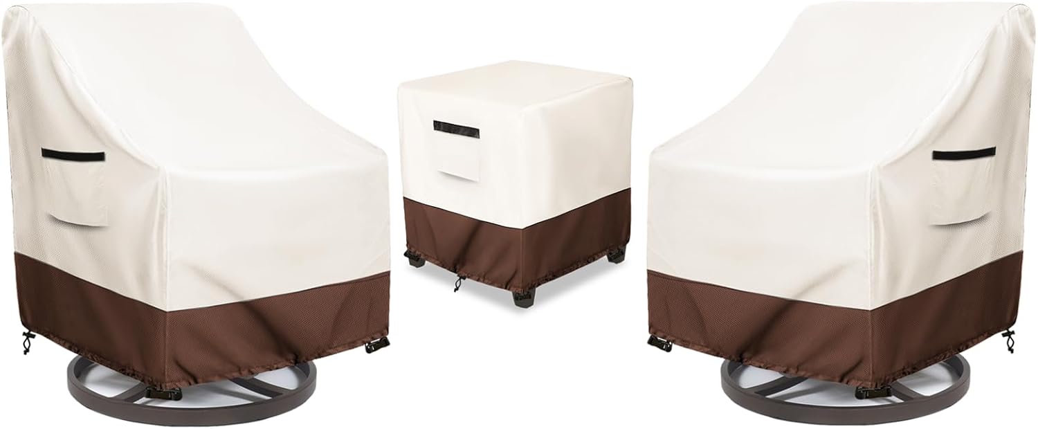 Size: 76"W x 32.5"D x 33"HColor:White & Brown.Material:Heavy duty 600D Oxford fabric with waterproof coating backing.Fit for: Outdoor Couch Design:2 stury handles,sofa cover bottom of it has elastic shrink rope.Function:Protect your sofa from UV,rain,snow,wind,hail,dust,dirt and etc.Warranty:One year warranty,If you are not satisfied with our products,please contact us. We will give you free replacement or full refund.