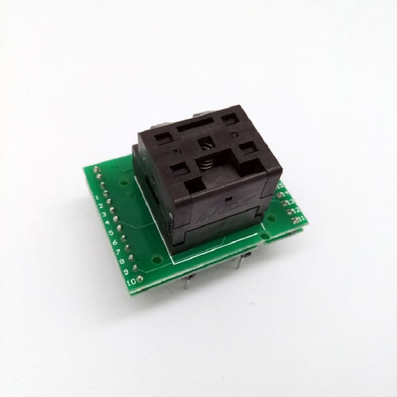 QFN20 MLF20 WLCSP20 to DIP20 Double-Board Programming Socket Adapter Pitch 0.5mm IC Body Size 4x4mm IC550-0204-009-G Test Socket Features:a.Clamshell structure with PCB board b.Adopting engineering material for socket structure,Strength is high ,lifetime is longc.Adopting import BeCu material for socket contactSpring ,thickening gold-plating surface ,impedance is small elasticity is goodd.For 0.5mm pitch packagee.Thru hole design Material & Performance: socket Body: PEI Contacts:Beryllium Copper Alloy Contact Plating:Gold over Nickel Operation Force:2.0KG min, the more PINs the greater force Contact Resistance:50m max Dielectric:700V AC for 1 minute Insulation Resistance:1,000M 500V DC Max Current Capacity : 1A Temperature Rating:-55 ~+175 Life Span 15,000 Times (Mechanical)Note :* , and duarable * Tested before * Easy to use * Technical support and datasheet are available .* we are the original manufacturer and welcome anyone to be our distribution agents* Professional manufacturer in all kinds of IC chip testing sockets and adapters. * More types of sockets and adapters for eMMC , eMCP , SOP , SSOP , TSSOP , QFP ,QFN , BGA , SOT , MSOP , DFN and customize design , for customized socket and more product detail , to . Specification and Dimension :* Type : Test & Programming Socket ( with pcb )* Package includes: QFN20 , MLF20 , WLCSP20* Pin Pitch : 0.5 mm* Pin Count : 20 pins * Applicable IC body size : 4x4 mm* Note : Double-board can plug into DIP socket of programmer directly .