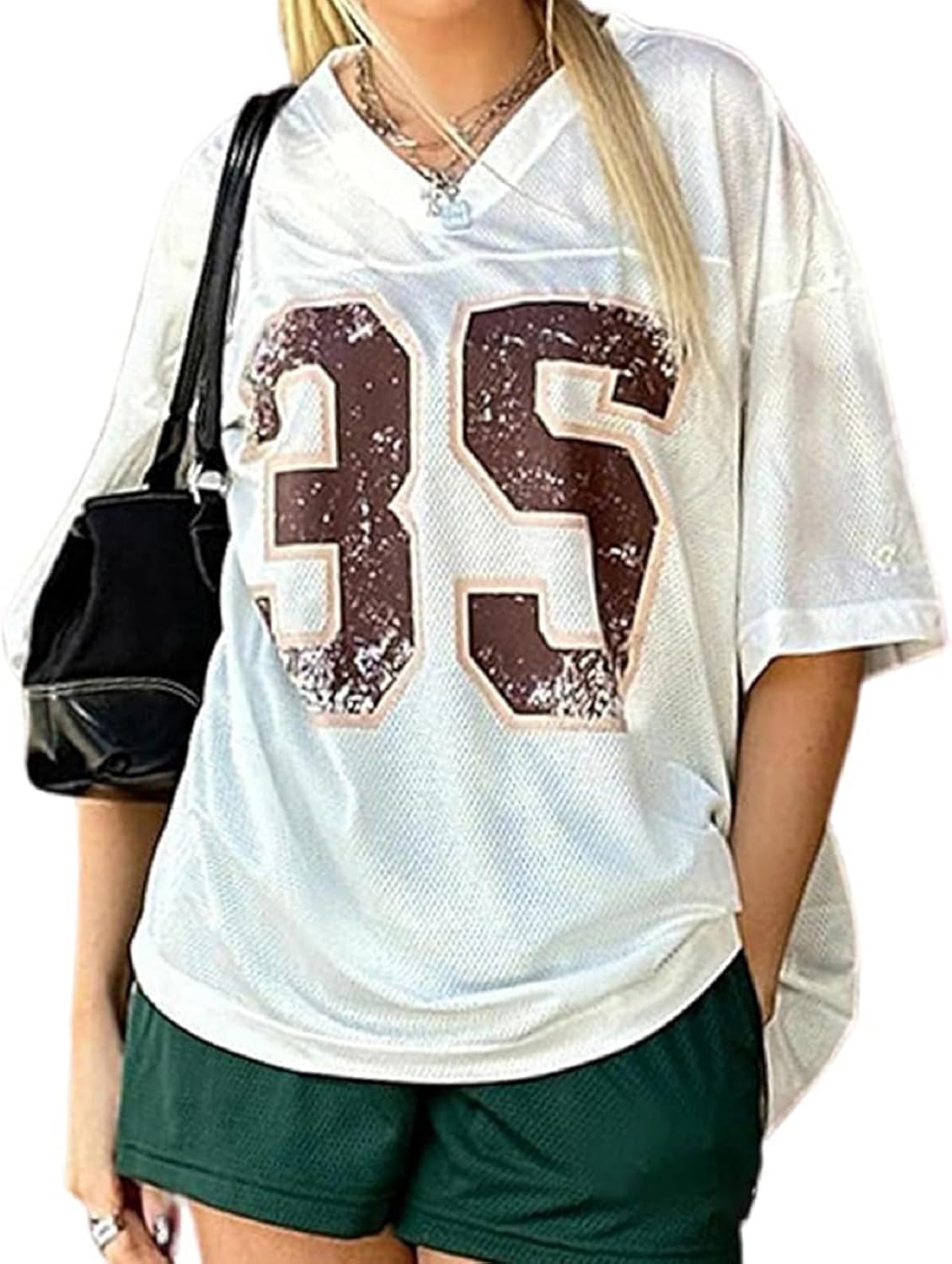 Specifications Material: polyester Gender: Female Sleeve Length: Short Sleeve Collar: V-Neck Pattern: Numbers Friendly Tips: 1.Please kindly allow 2-3% difference according to manual measurement 2.Please note that a slight color difference should be acceptable due to the light and screen. Thanks.