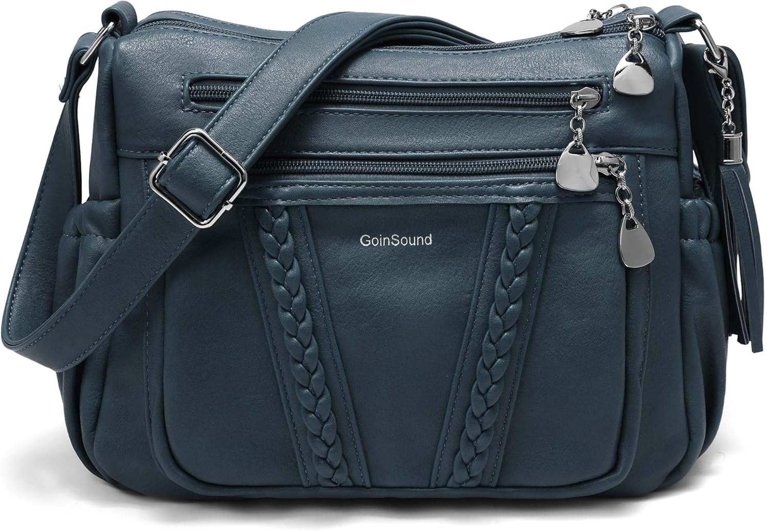 GOINSOUND Women's Crossbody Bag Soft PU Leather Multi-Pocket Shoulder Bag with Braid & Tassel Detail