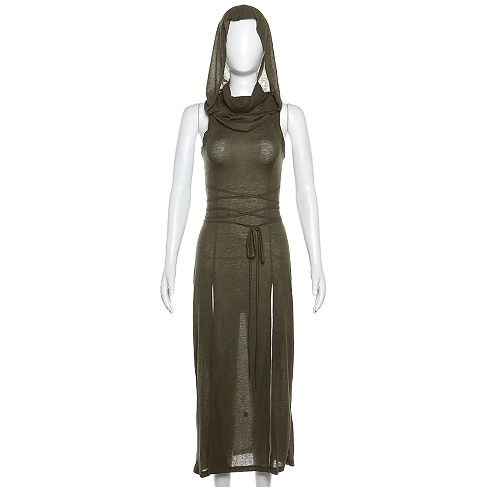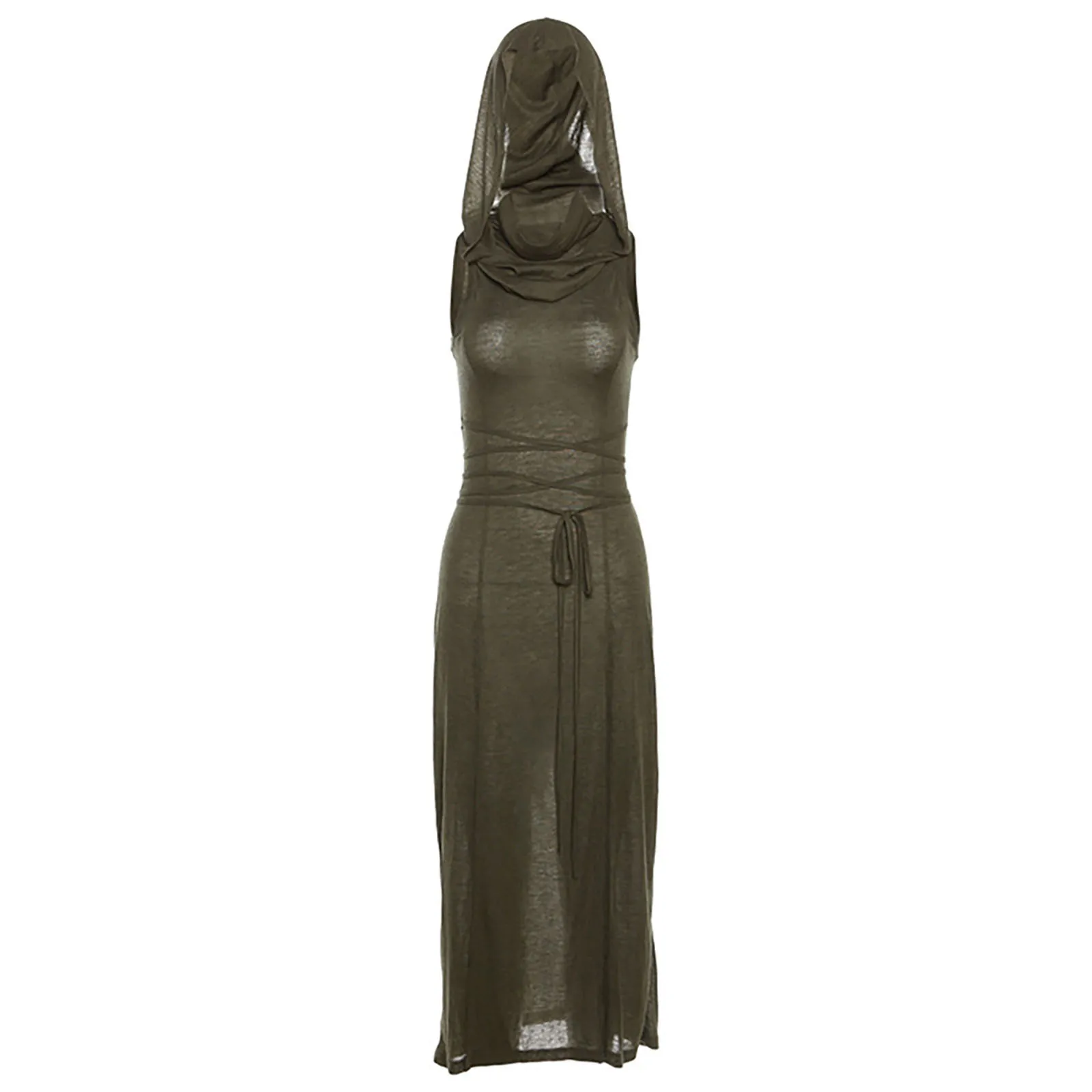 Women's Summer Fashion Personality New Hooded Loose Solid Color Dress