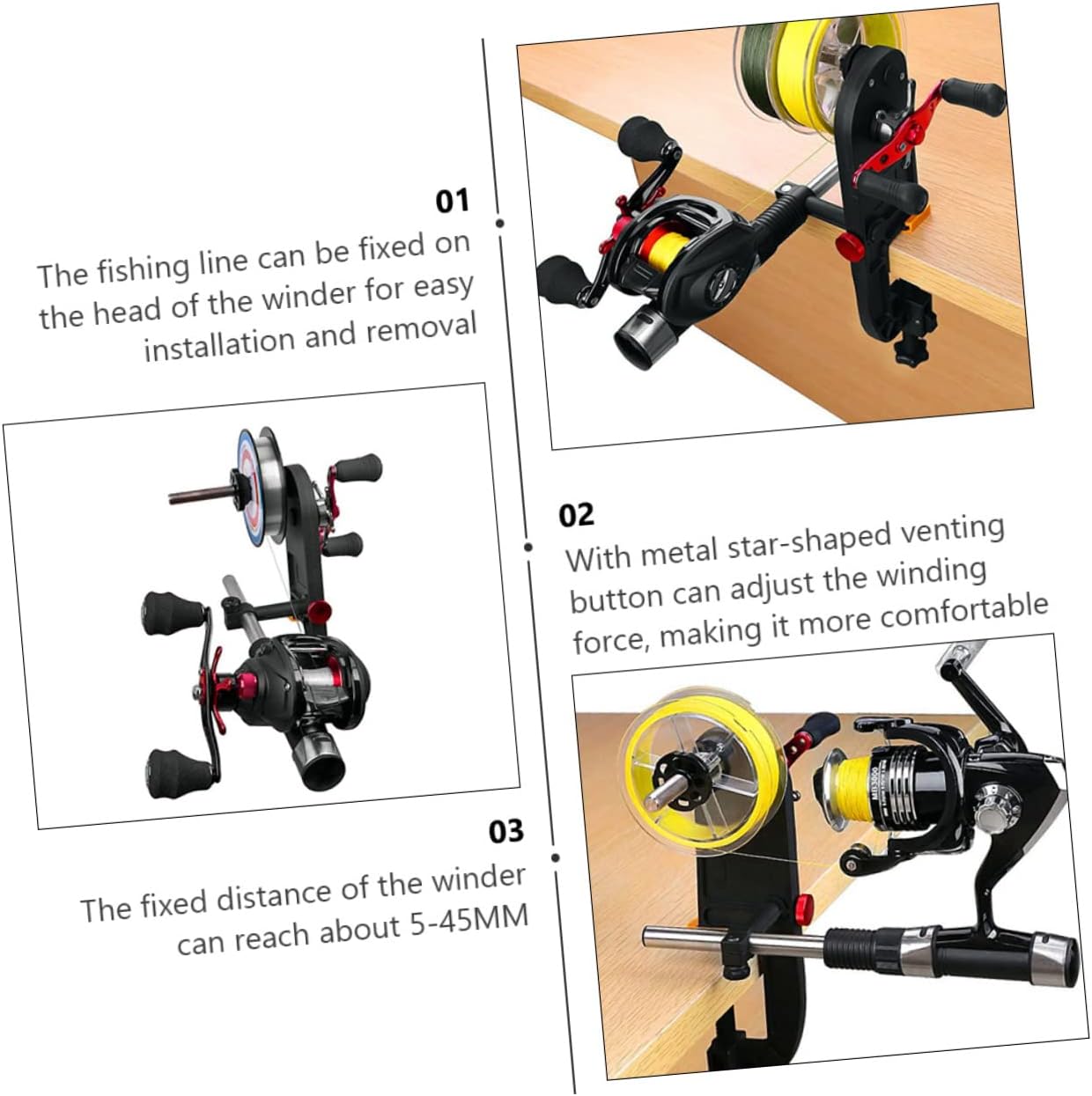 Package List 2 x fishing line winder Characteristics -Size: 23.00X8.00X3.00cm/9.04X3.14X1 Fishing Line Winder. -Material: metal, plastic Fishing Line Spooler - Note: fishing rod, fishing reel andfishing line are not included Fishing Reel Spool Line Winder. -Color: Black Fishing Line Spooler System - Practical fishing reel spooler to putline fast and convenient Reel Spooling System. - Winding thread onto fishing reel easily,no need to ask for help Reel Spooler. - Adopt metal and plastic materialfor durable use Fishing Tool. - Can be given as a present to your familyand friend Spooling Station.Goods DescriptionReel Spooling Station If you've been looking for a fishing line winder,then your search is over! That's because our product can provide great help inwinding up your fishing line into fishing reel by yourself, very convenient touse