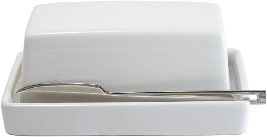 This ceramic butter dish is crafted from lead-free ceramic, offering durability and a timeless aesthetic that complements any kitchen decor. Its refined design balances everyday functionality with understated beauty. Storing butter in the dish helps reduce exposure to air and slow oxidation, keeping it fresh and easy to enjoy. Slightly smaller than the long butter sticks commonly sold in the United States, it is ideal for keeping a day’s portion at room temperature, where the butter stays soft and easy to spread, while the remaining butter can be stored in the refrigerator. It fits standard West Coast butter sticks; East Coast sticks, which are slightly longer, may require trimming. The included matching stainless steel knife fits conveniently inside the dish, eliminating the need to search for a separate utensil, making it the ideal addition to your busy mornings. Dishwasher safe. To avoid chipping or breakage, we recommend placing the dish carefully and avoiding contact with heavier items during washing or storage. Made in Mino, Japan, a region known for its centuries-old pottery tradition, each piece of this butter dish represents exceptional craftsmanship. Its selected quality construction ensures lasting use, adding a sophisticated touch to your table. Dimensions: 5.7 × 3.5 × H 3.5 in / 14.5 × 9.0 × H 6.0 cm Inside Dimensions: 4.0 × 1.8 × H 1.8 in / 10.2 × 4.5 × H 4.5 cm