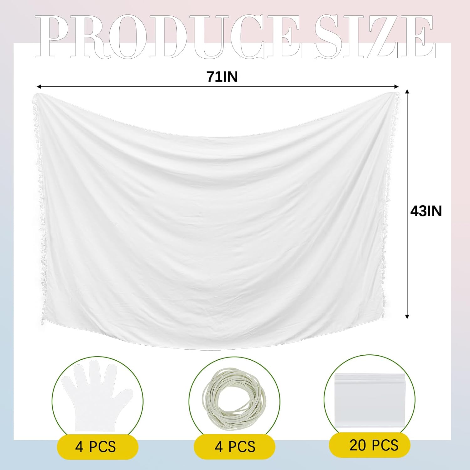 Features: With all the necessary accessories included, this beach towels tie dye kit offers plenty of DIY fun and creativity and a great add-on to your beach experience. This set features 4 white beach towels, which makes it suitable for family outings or vacations with friends, allowing everyone to have their own beach blanket. Specifications: Material: cotton Color: white Size: about 71 x 43 Inch Package includes: 4 x Beach towels 20 x Rubber bands 4 x Disposable gloves 4 x Sealed bags Notes: Manual measurement, please allow slight errors on size. The color may exist a slight difference due to different screen displays.